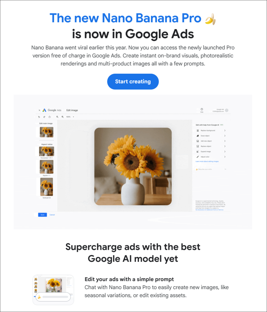 Google Ads is no different. Only a few days ago, Google announced that its AI image generation Nano Banana Pro is now fully integrated within Google Ads, allowing almost instant image generation with almost zero human thought.